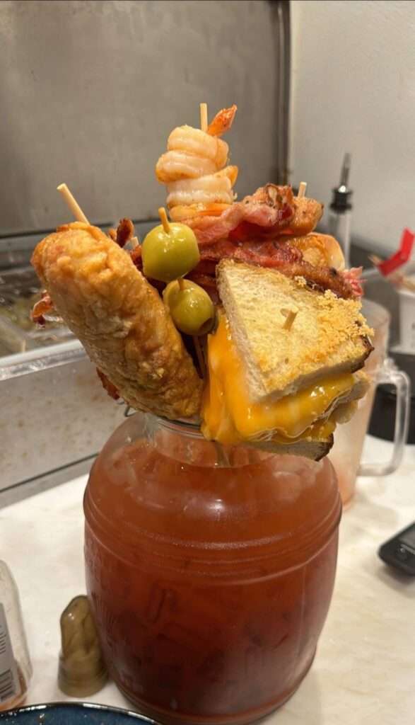Our house ground Angus beef stuffed and grilled with cheddar and bacon topped with more cheddar, bacon and house mayo.